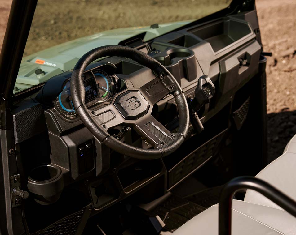 - Horn, backup alarm, password protected, electronically adjustable speed limiting, Polaris Pulse Electrical System